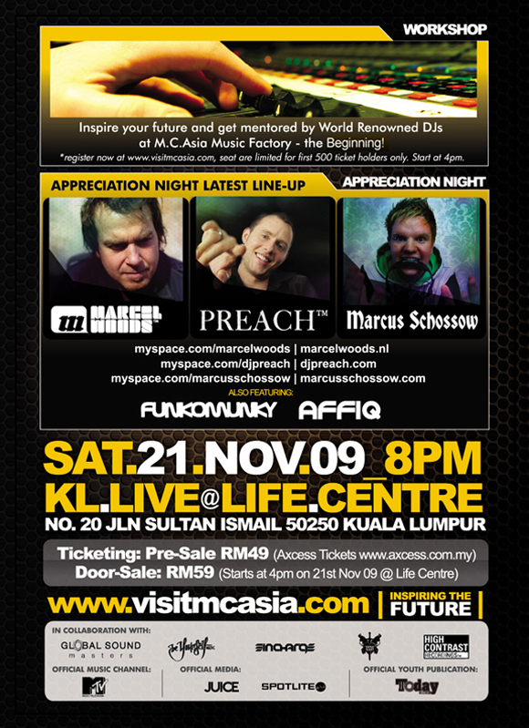 The inaugural Music Conference Asia (M.C.Asia) Music Factory “The Beginning”, held at the stylish grounds of Life Centre Kuala Lumpur this evening, has successfully attracted conference participants, both industry professionals and music enthusiasts of the Electronic Dance Music, from the region, including Singapore, Indonesia, Australia, Japan and Thailand just to name a few.
