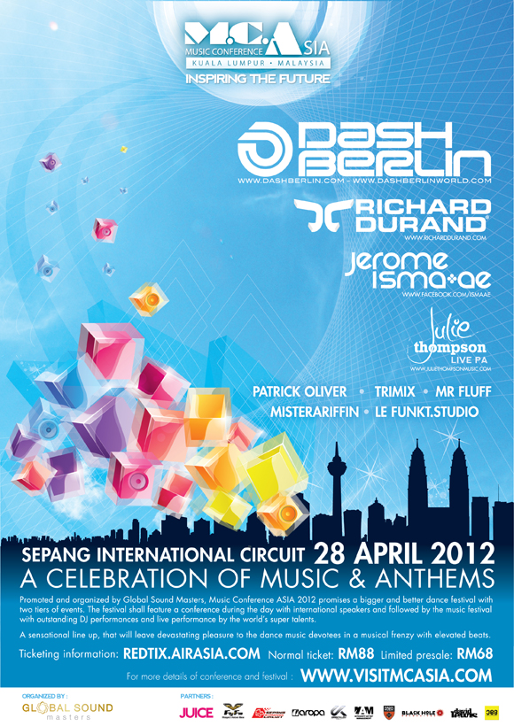 A weekend of revolutionary sound and euphoria, the long-awaited music event Music Conference ASIA (MC Asia) has assembled over 10,000 dance music revellers on Saturday, 28 April 2012 at Sepang International Circuit. Fore fronted by exceptional acts, MC Asia 2012 was a true success. CLICK HERE for official event after movie.